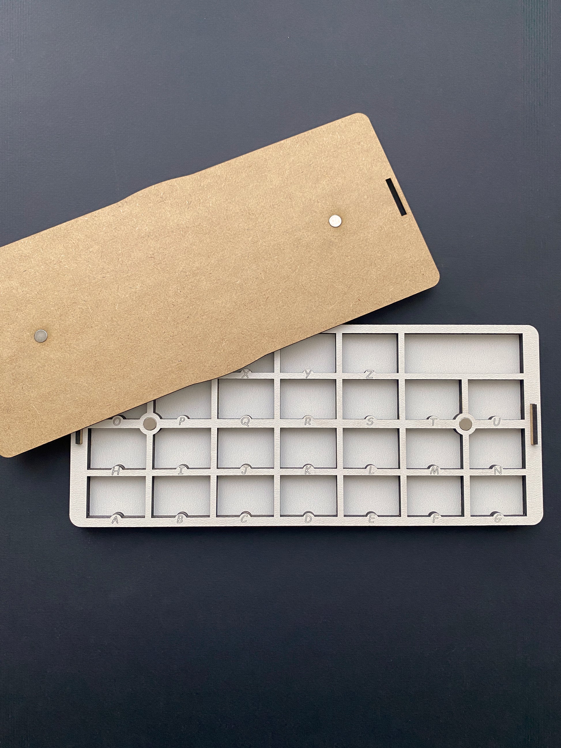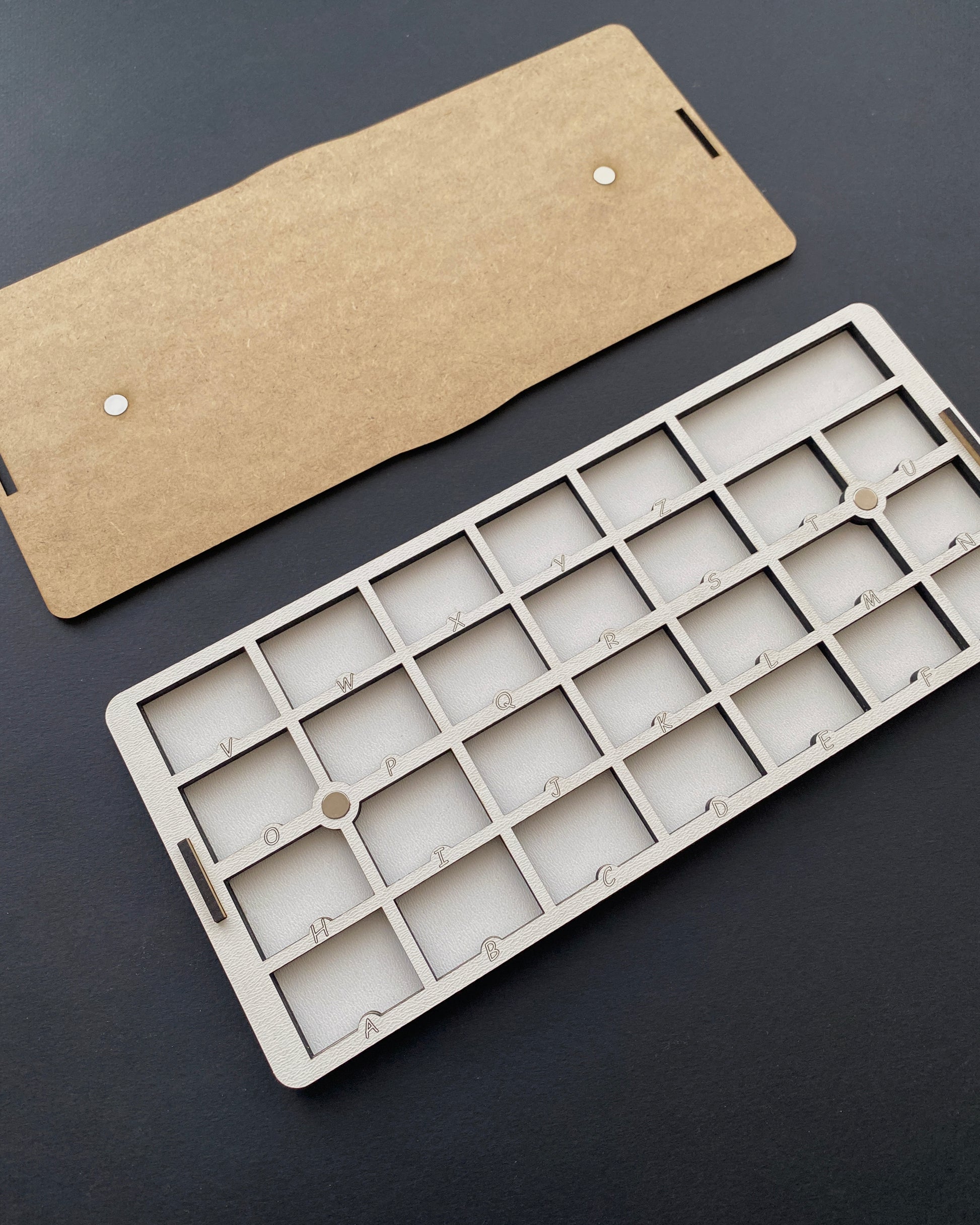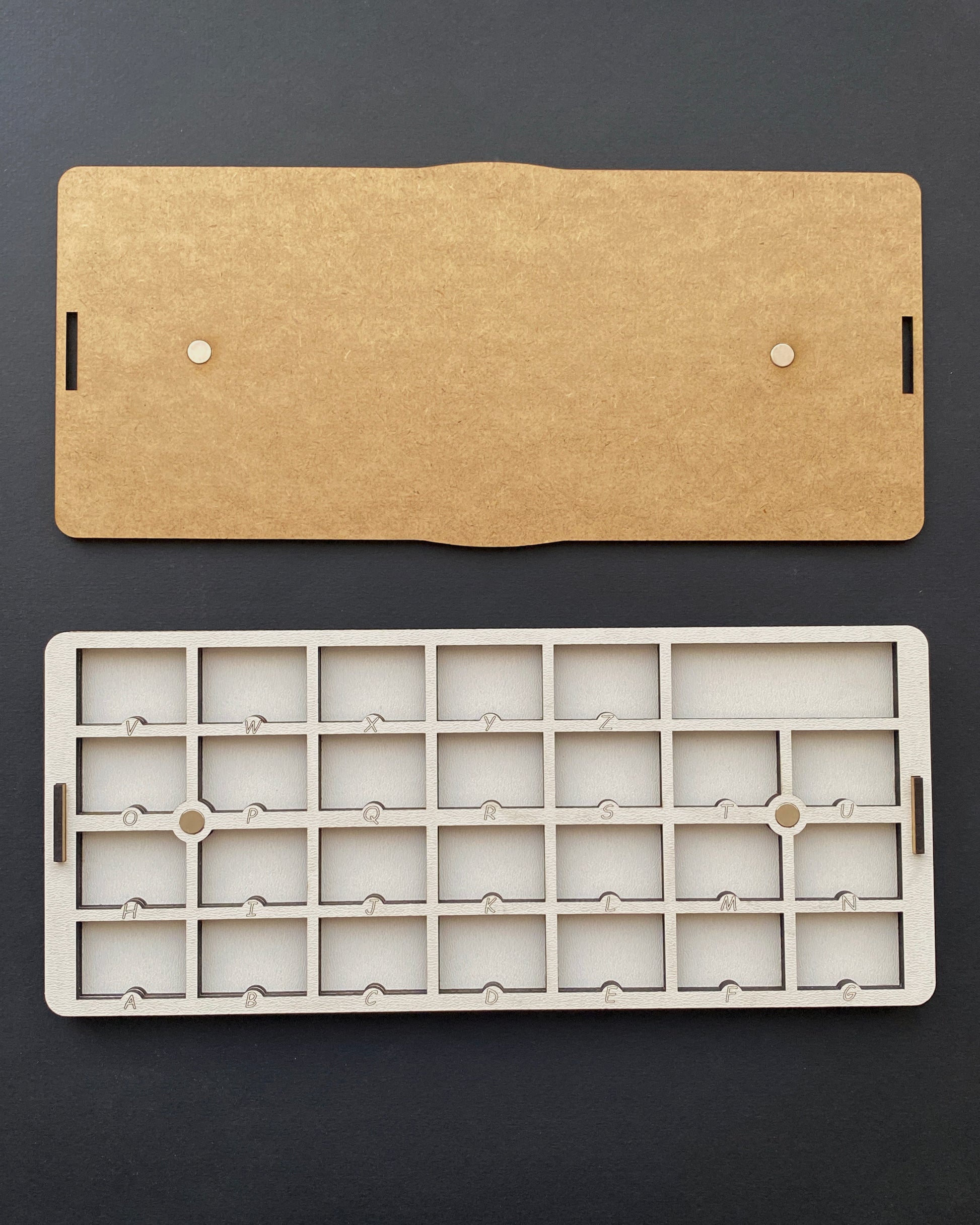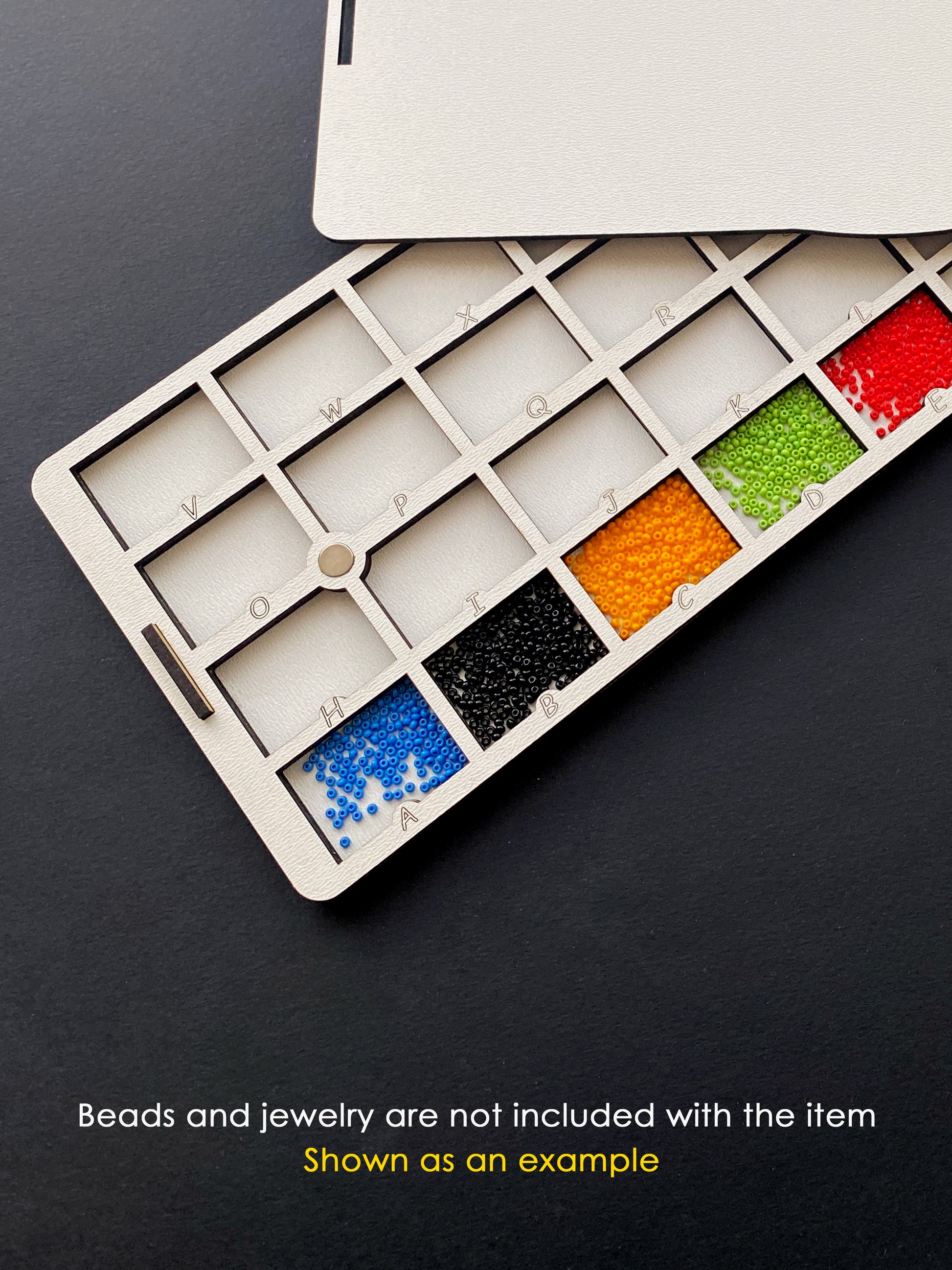 FULL ALPHABET Bead Organizer for seed beads, box storage with cover, 27 rectangular sections with letters, beadwork space organization — a practical and stylish organizer for storing seed beads. Material: Eco-friendly plywood ensures lightness, durability, and strength.