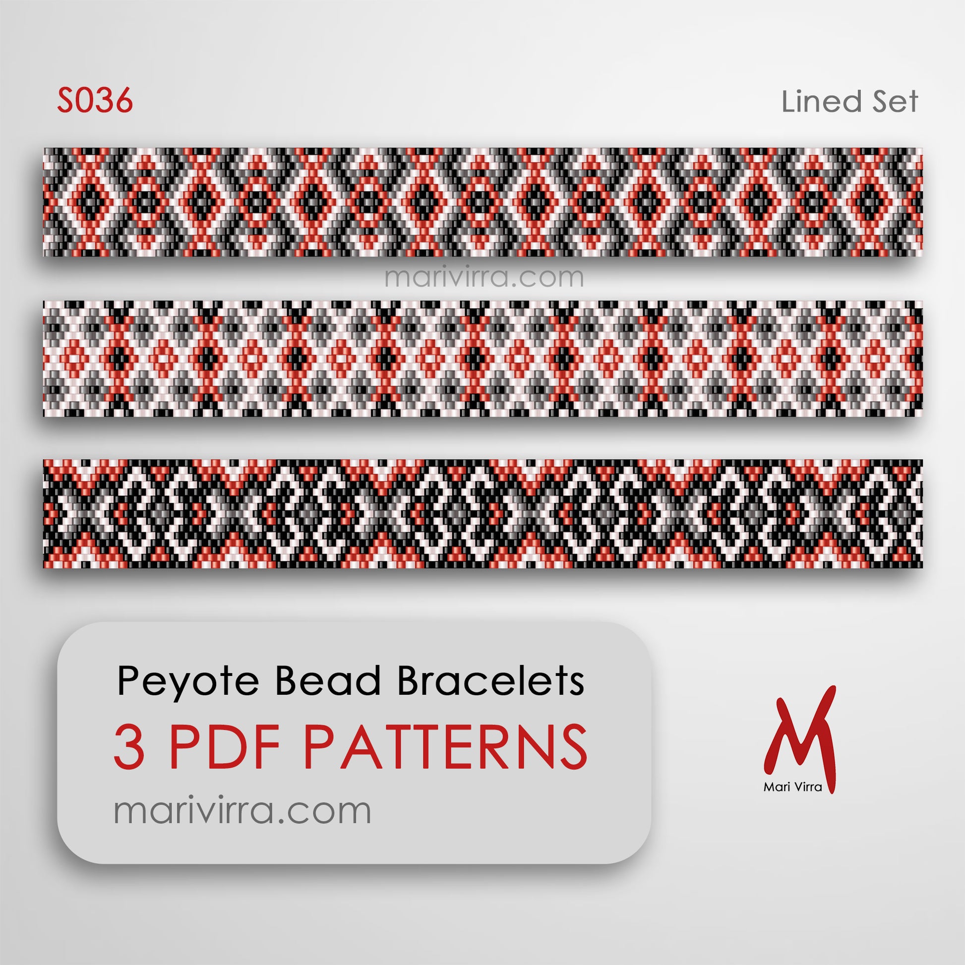Lined Set of Three Peyote Digital Bead Patterns