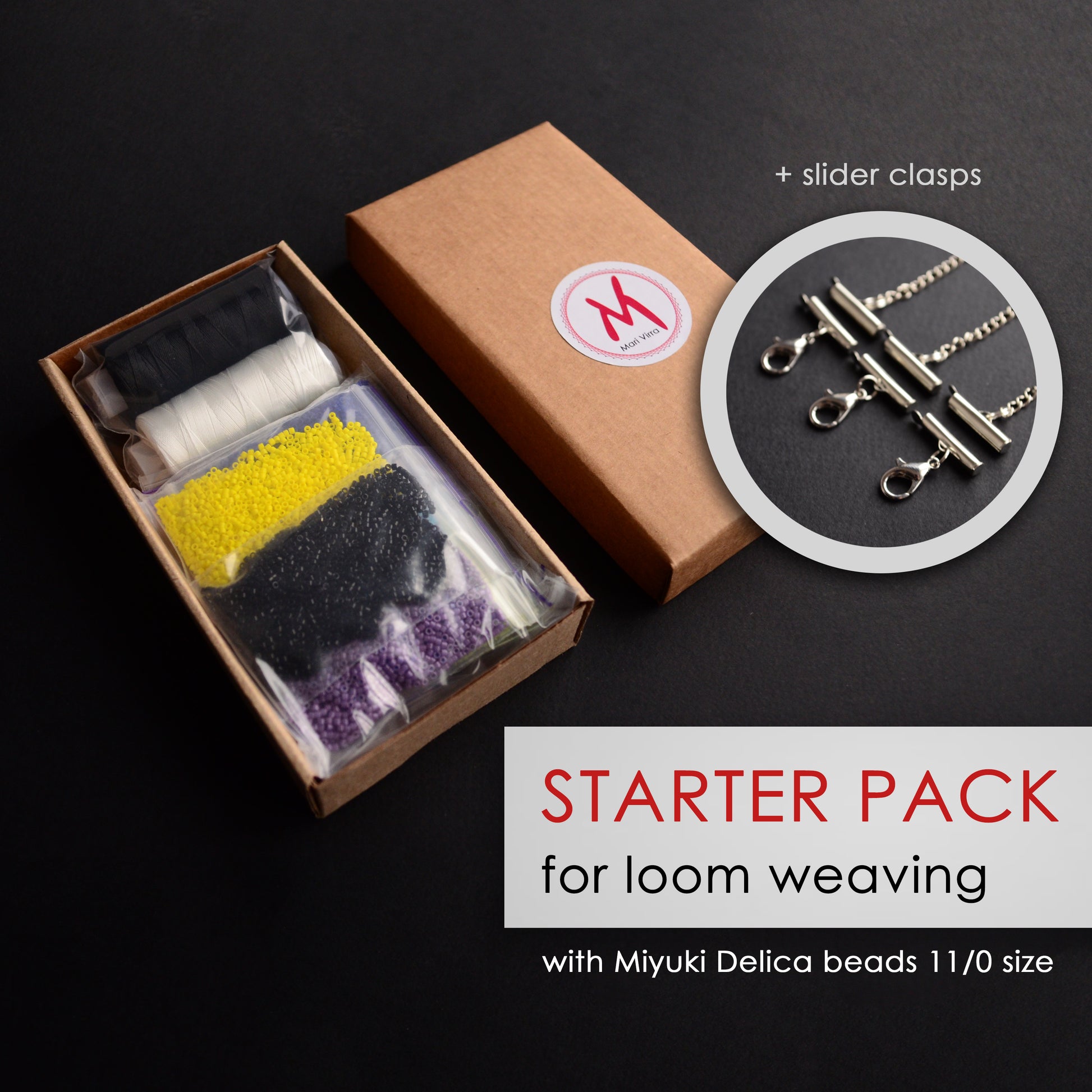 Starter Beading Pack Kit for creating Bead Bracelets with Miyuki Delica seed beads 11/0 size. Ideal set for a beginner in bead weaving or for professionals who want to get everything they need at once.