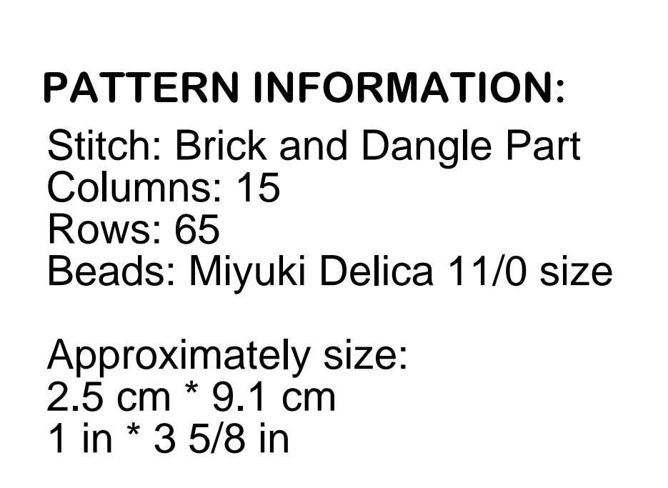 This original beading pattern for long earrings is designed to combine two techniques for an elegant and dynamic result. The upper part of the earrings can be created using peyote stitch or brick stitch, allowing you to choose your preferred style and achieve a clean, structured base. The lower part is made with the technique of stringing seed beads on a needle, forming beautiful dangling elements that add movement and lightness to the design. With the right choice of colors, you can create unique statement earrings — whether for everyday wear, special occasions, or as a handmade gift.