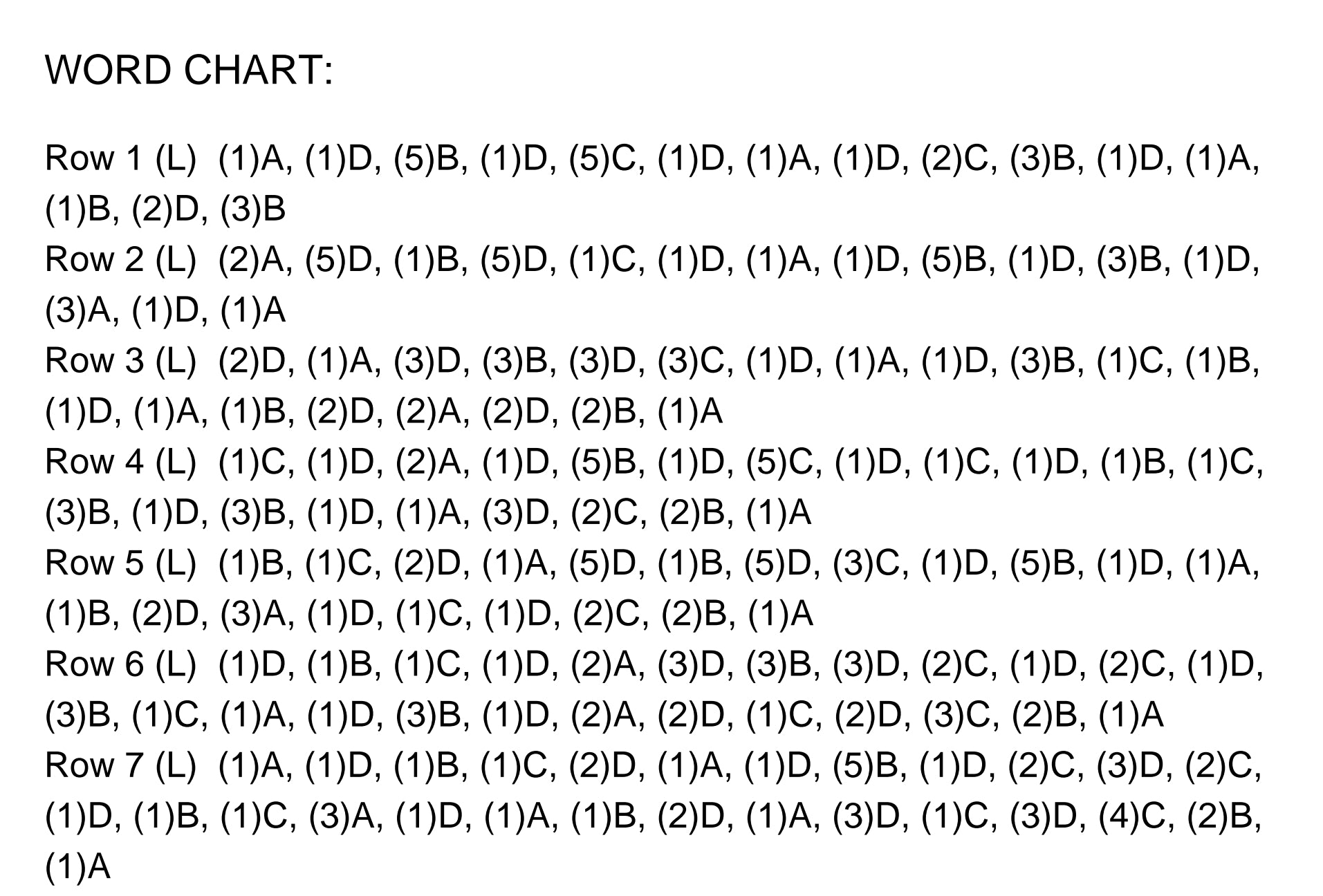 Written version of a beading pattern that lists each row step by step using bead color codes or names